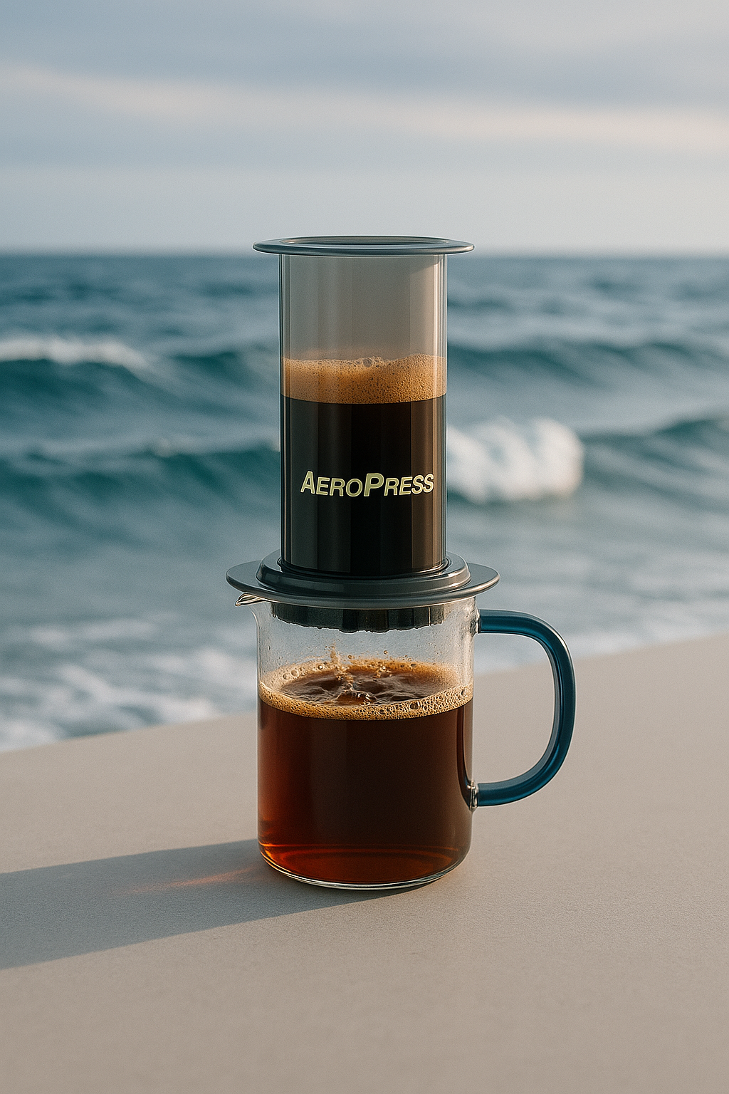 The AeroPress brew is naturally strong. For a lighter cup, add 20–40 g hot water and swirl.